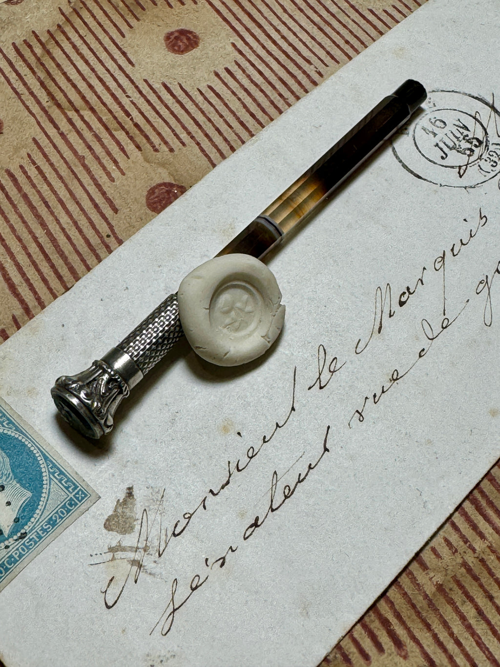 Antique Victorian Banded Agate & Silver Rose Seal