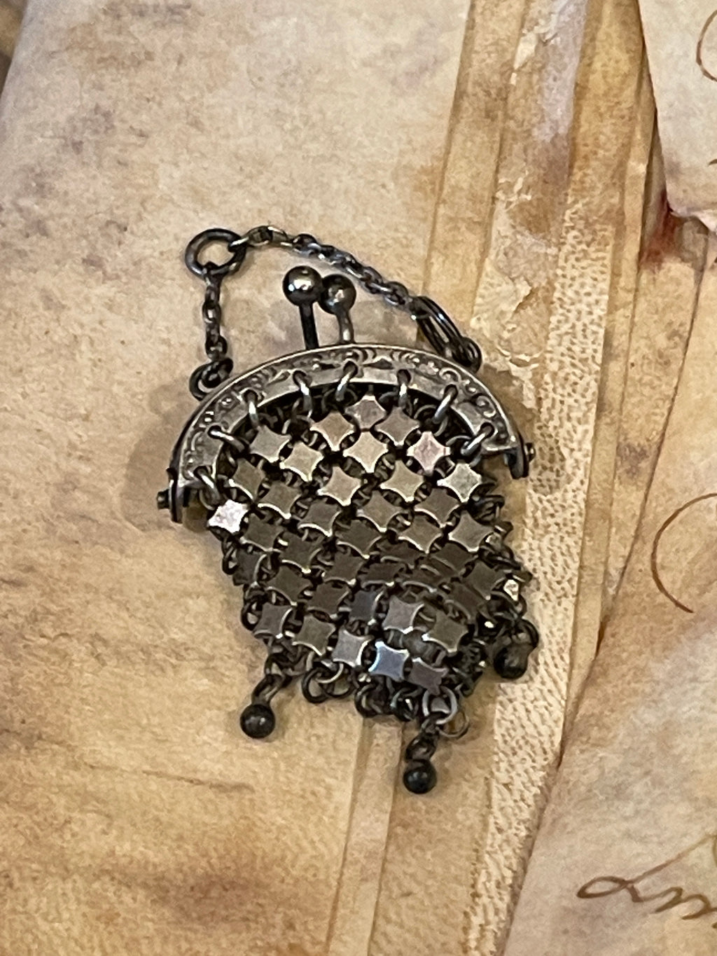 Reserved - Antique French Silver Decorative Chatelaine Chainmail Purse