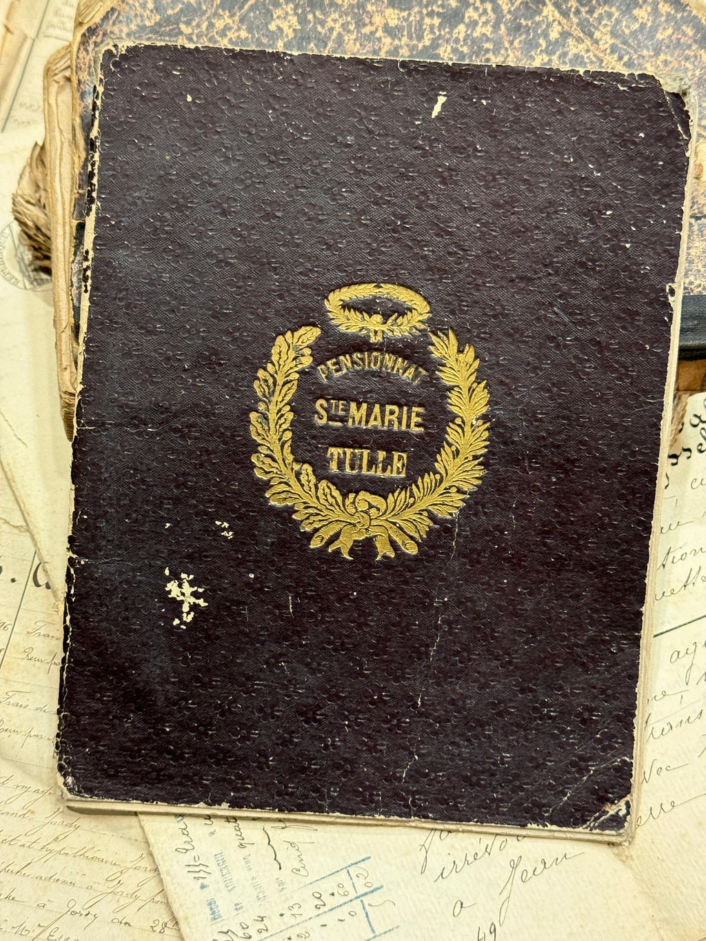 Antique 1870's French Calligraphy Pages in Original Papier Dominote style folders