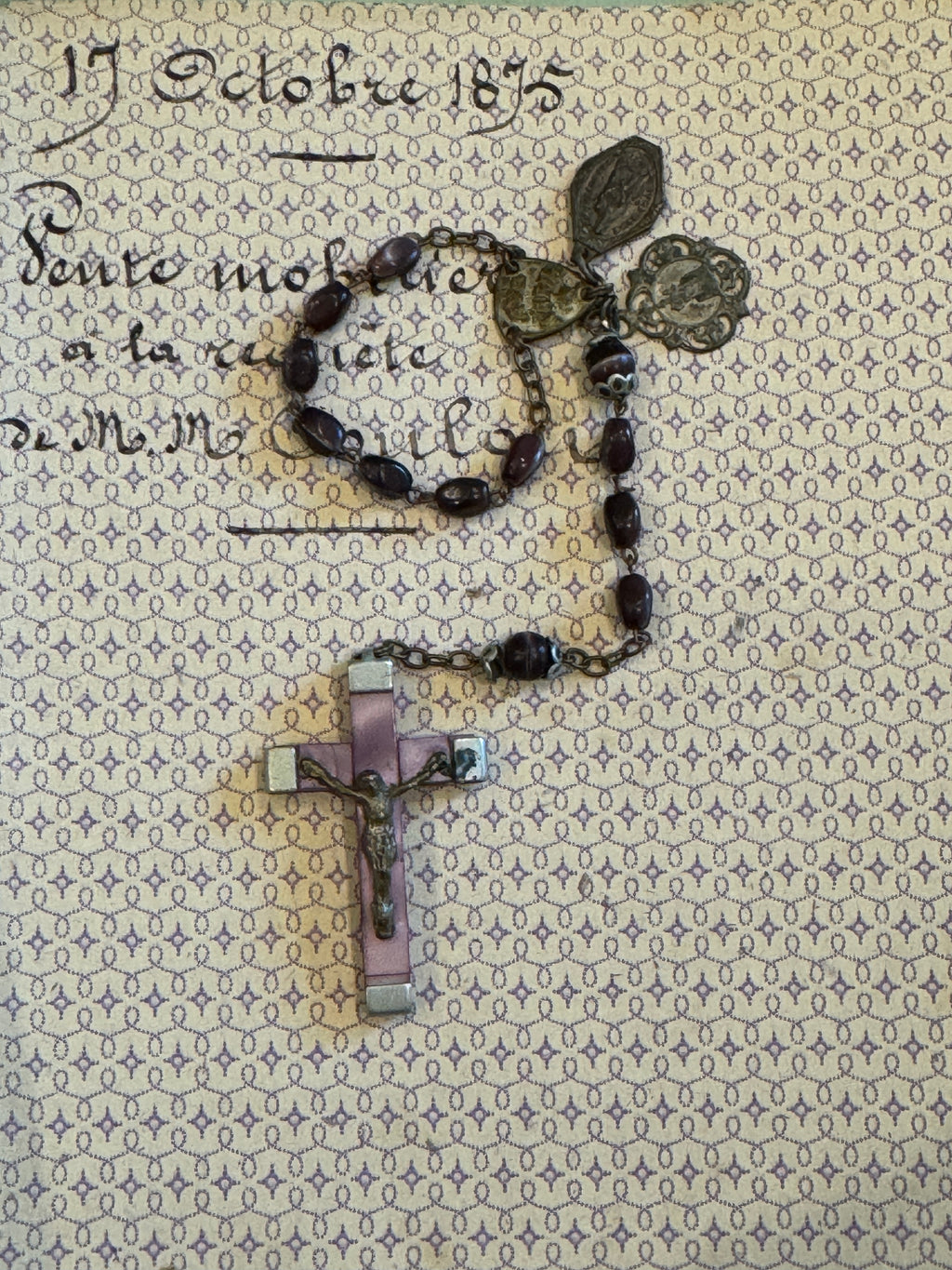 Antique French Purple Rosary Piece with Small Medals