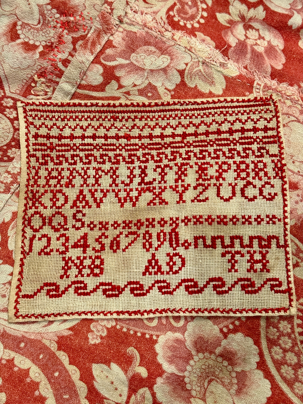 Antique French red work cross stitch embroidery from the late 1800s-1950s.