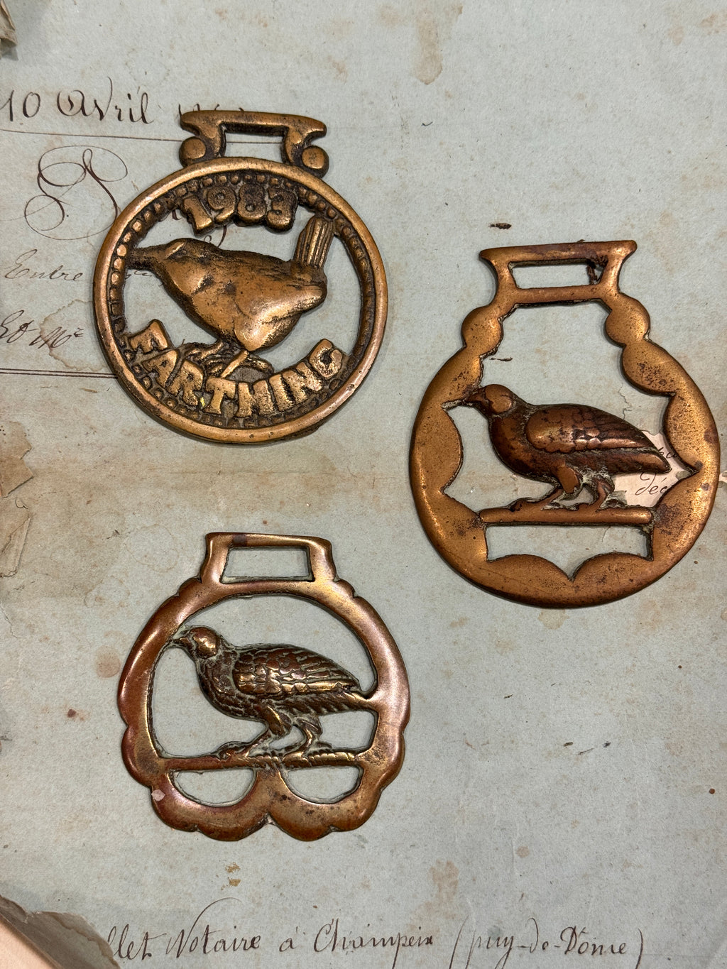 Vintage English Souvenir Horse Brass Chicken Medallions