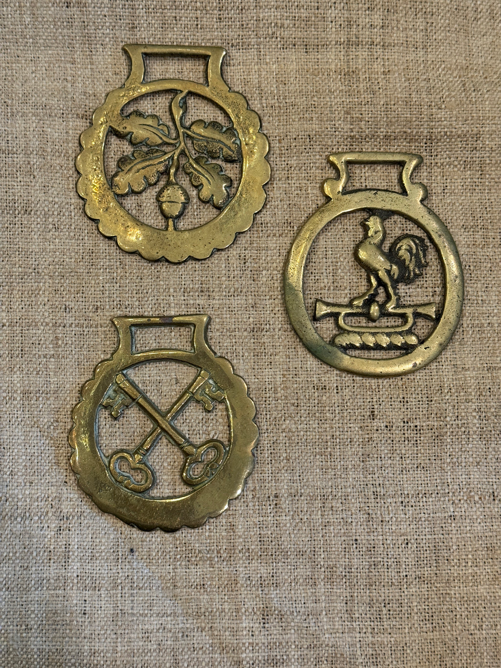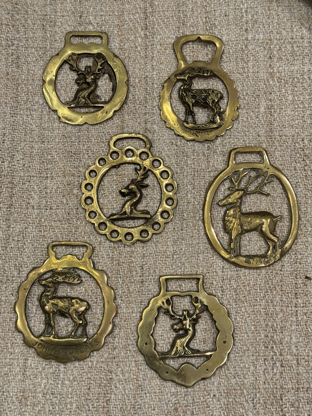 Vintage English Souvenir Horse Brass Deer Swan Medallions