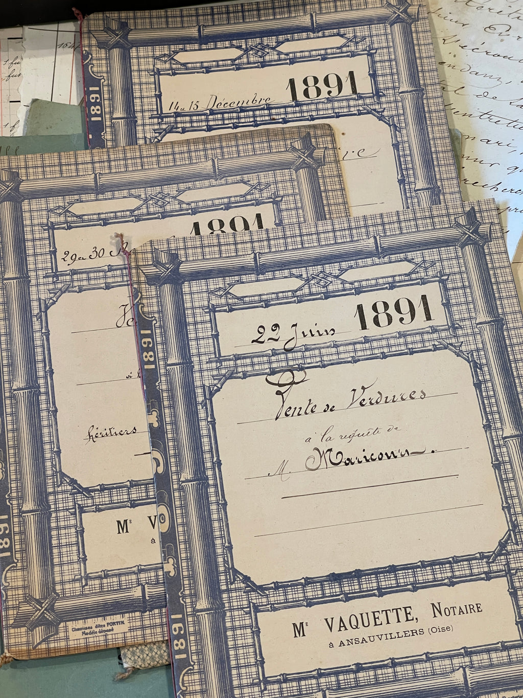 Antique 1891 French Calligraphy Pages in Original Blue folder/notebook