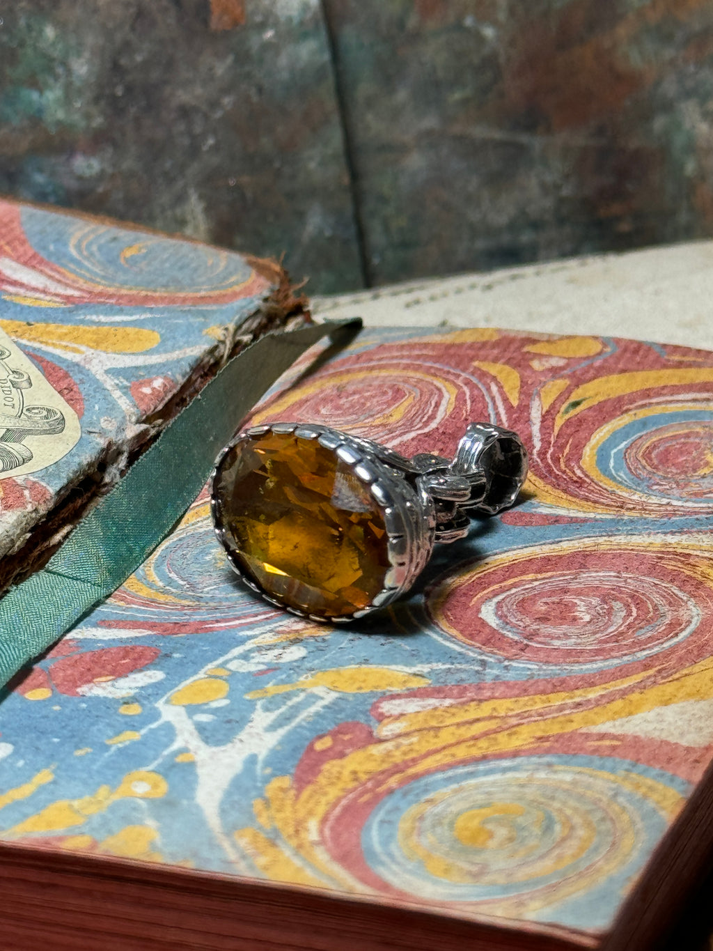 Beautiful Victorian Sterling Silver Citrine Fob Seal Pendant