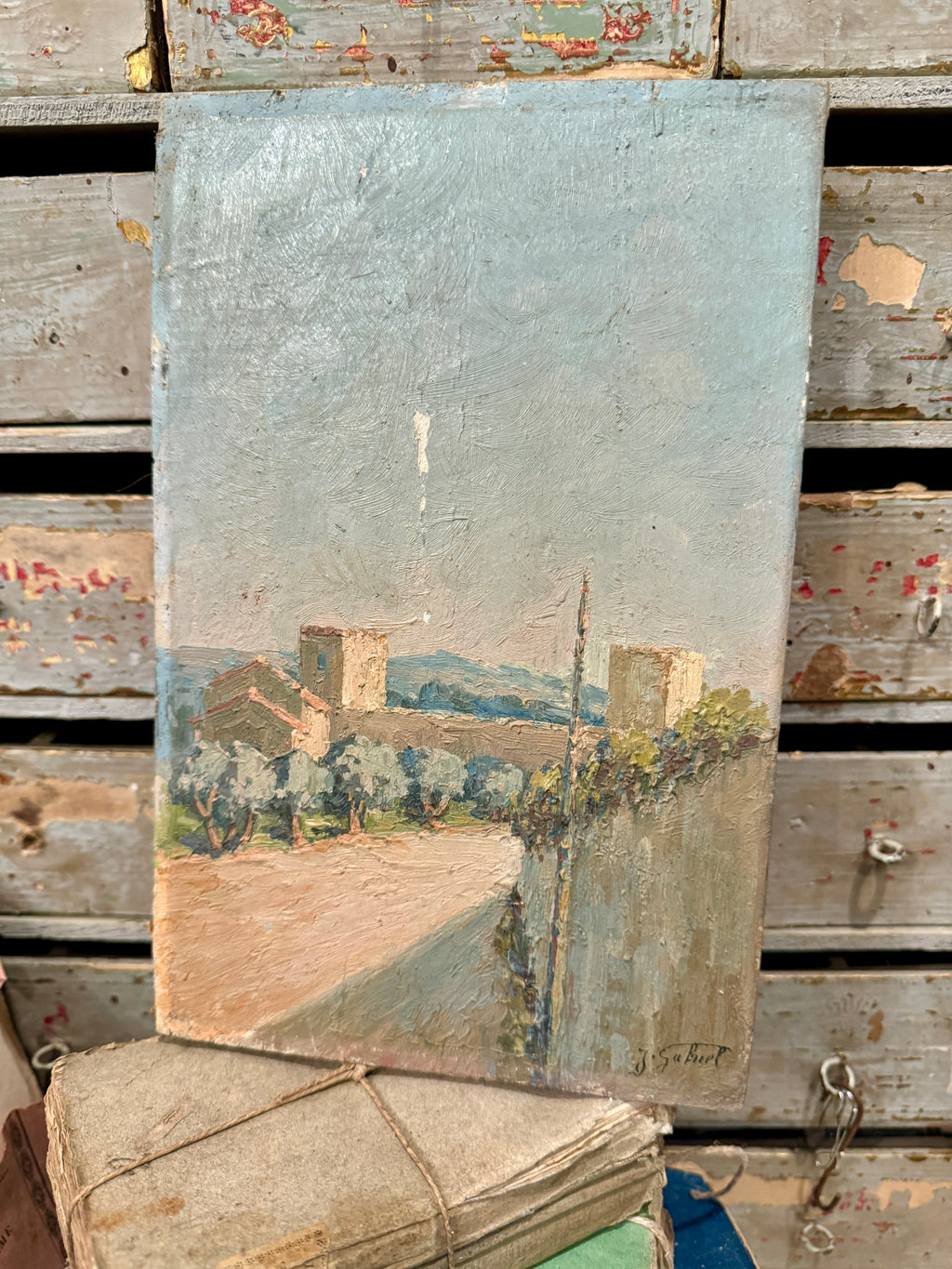 Beautiful Antique Timeworn French Painting