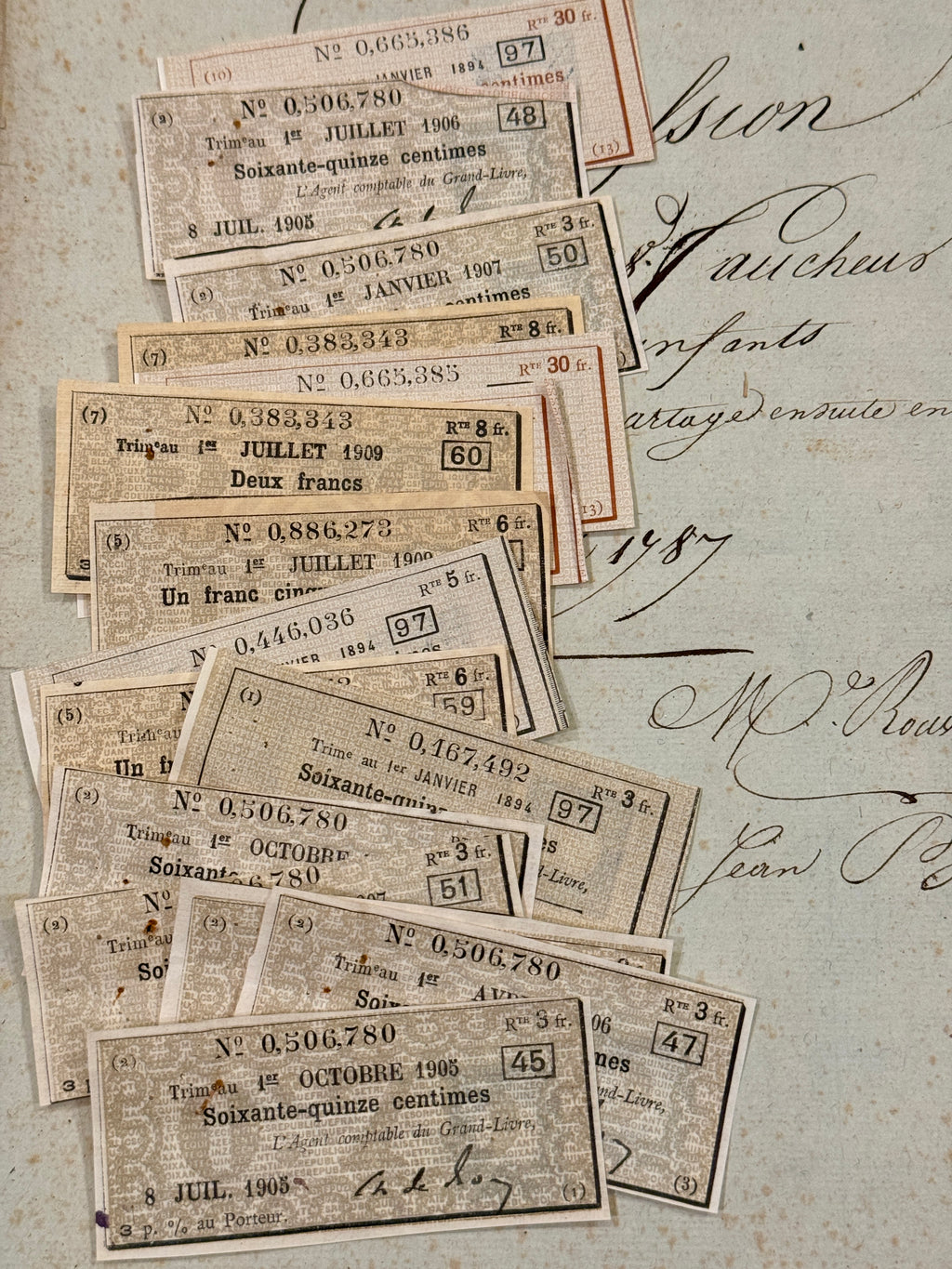 Antique French Envelope with Assorted Tax Receipts