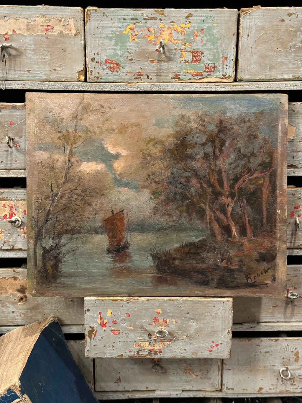 Original 1800s Antique French Barbizon School Signed Oil Painting