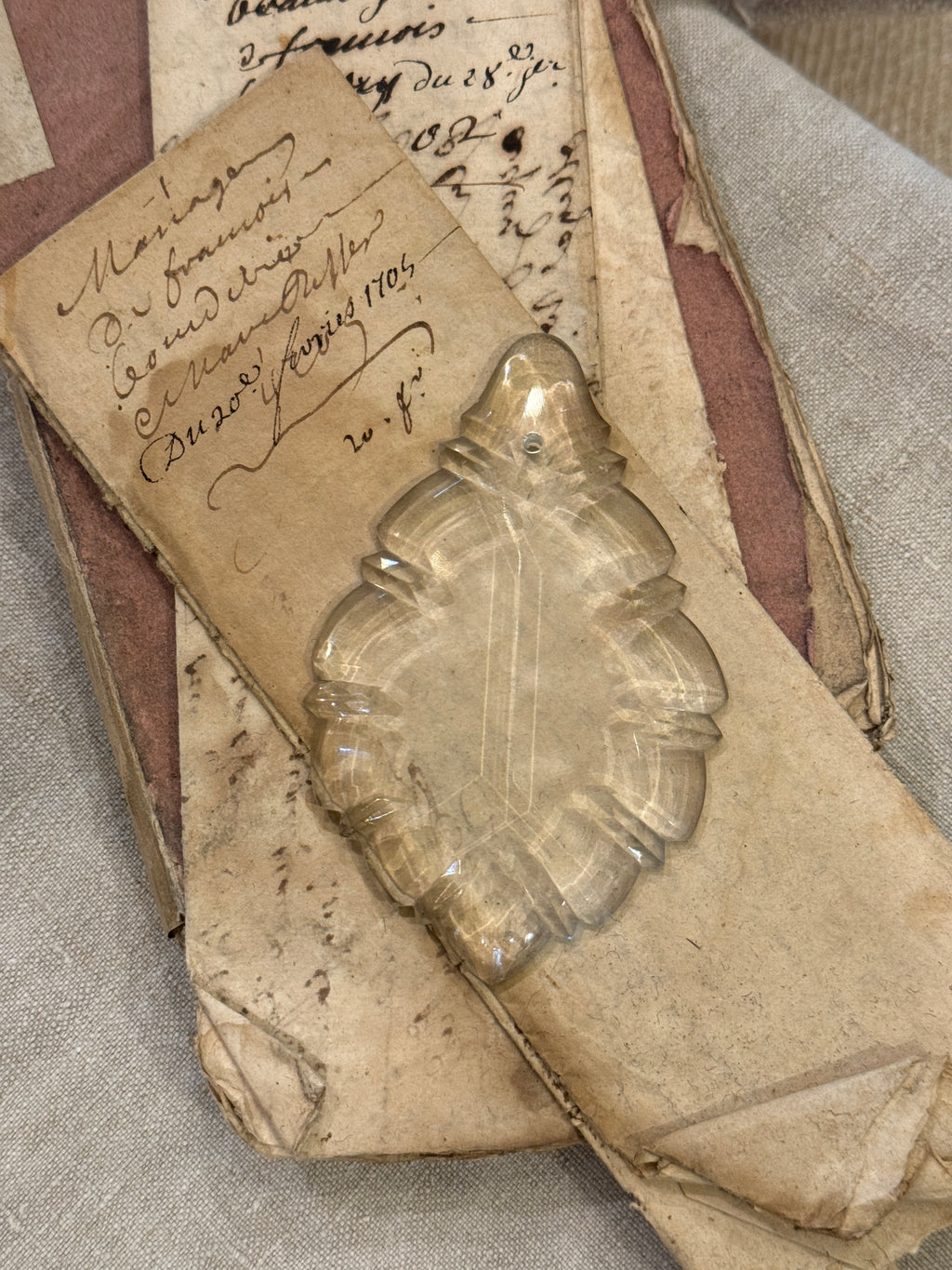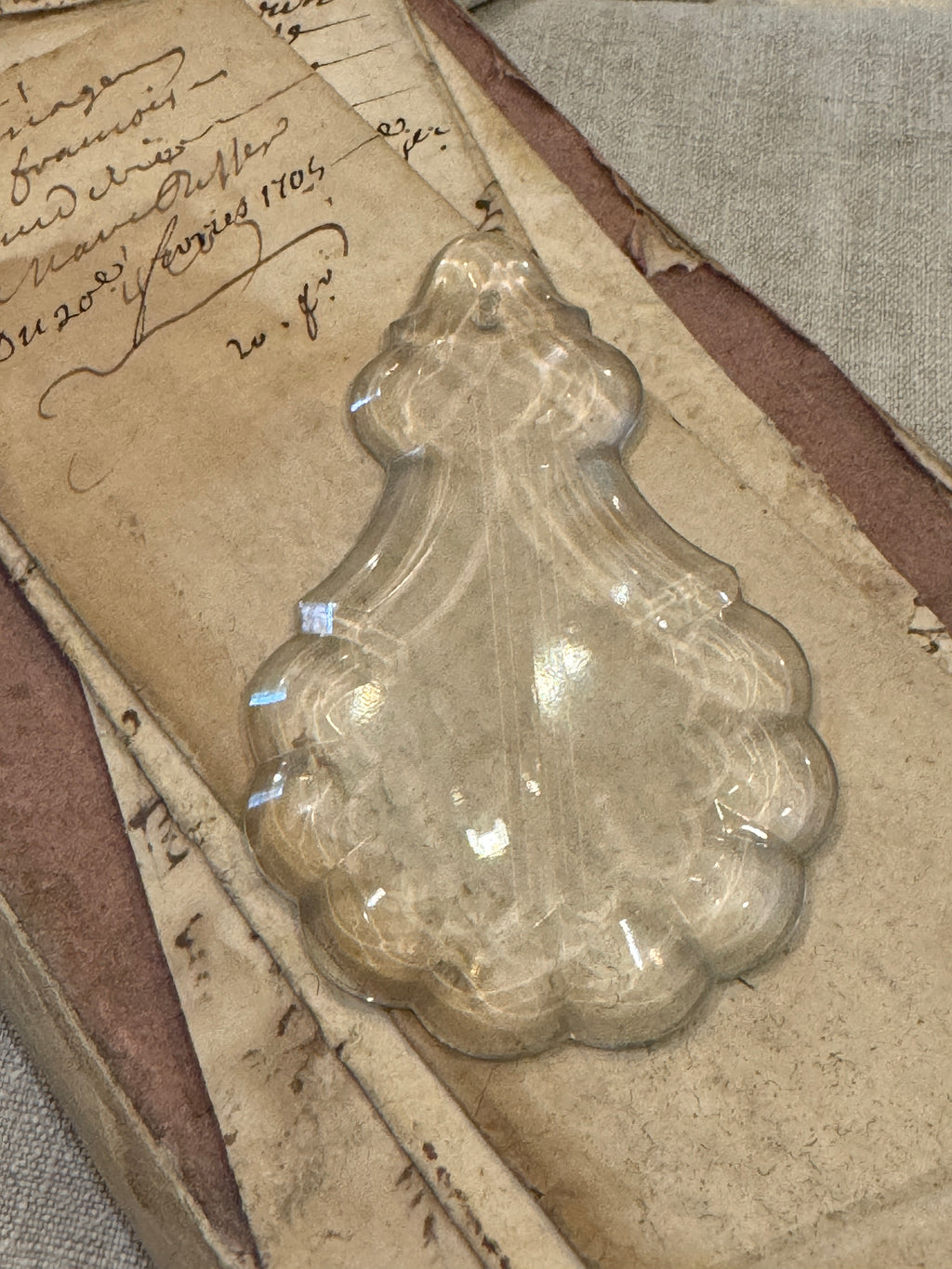 Large Antique French Scalloped Pendalogue Crystal Prism