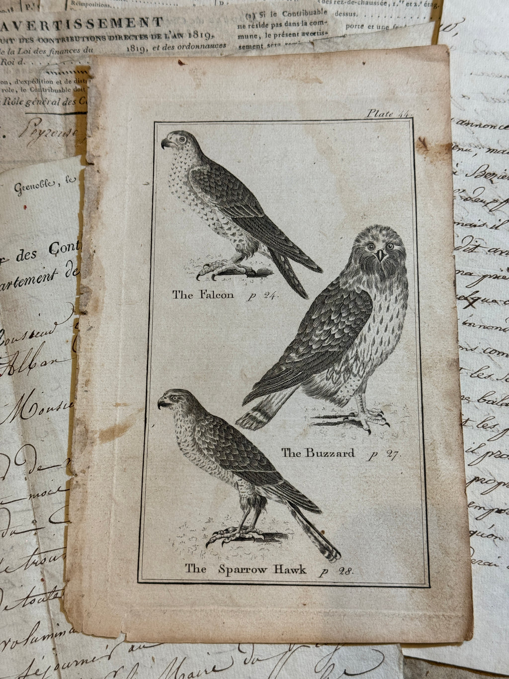 Original Antique Natural History Engravings of Buzzards, Falcons and Hawks