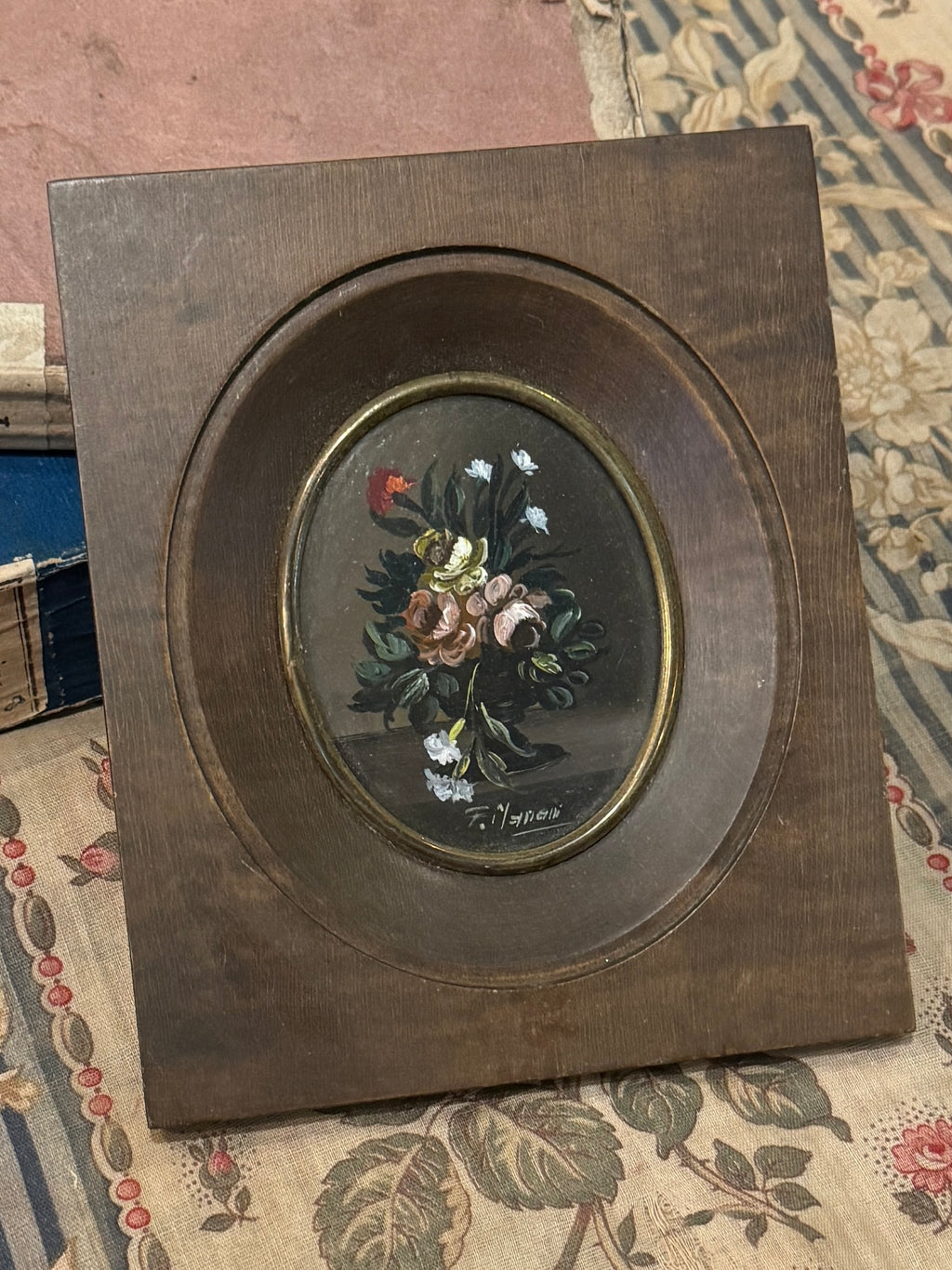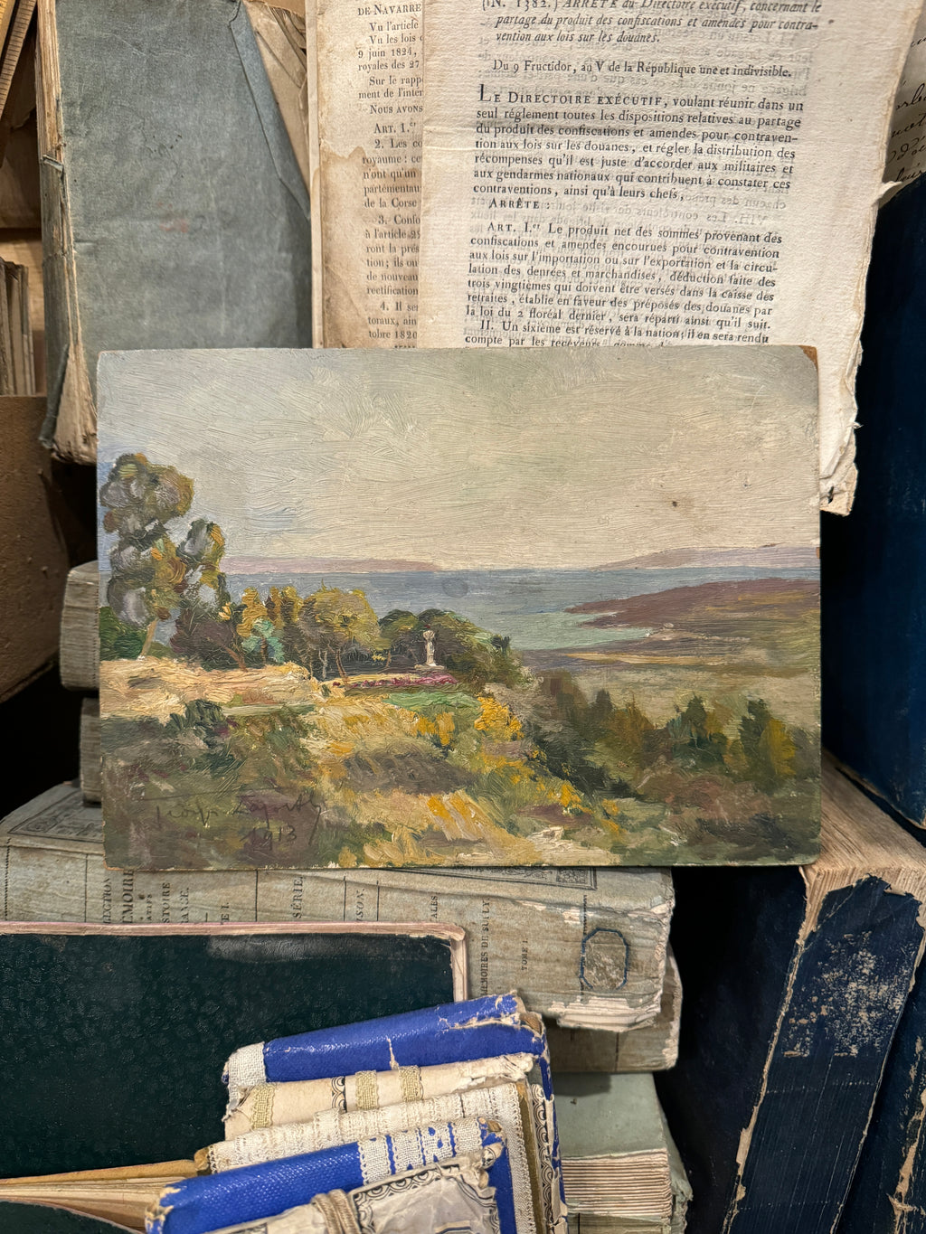 Beautiful Antique Timeworn French Landscape and Lake Painting