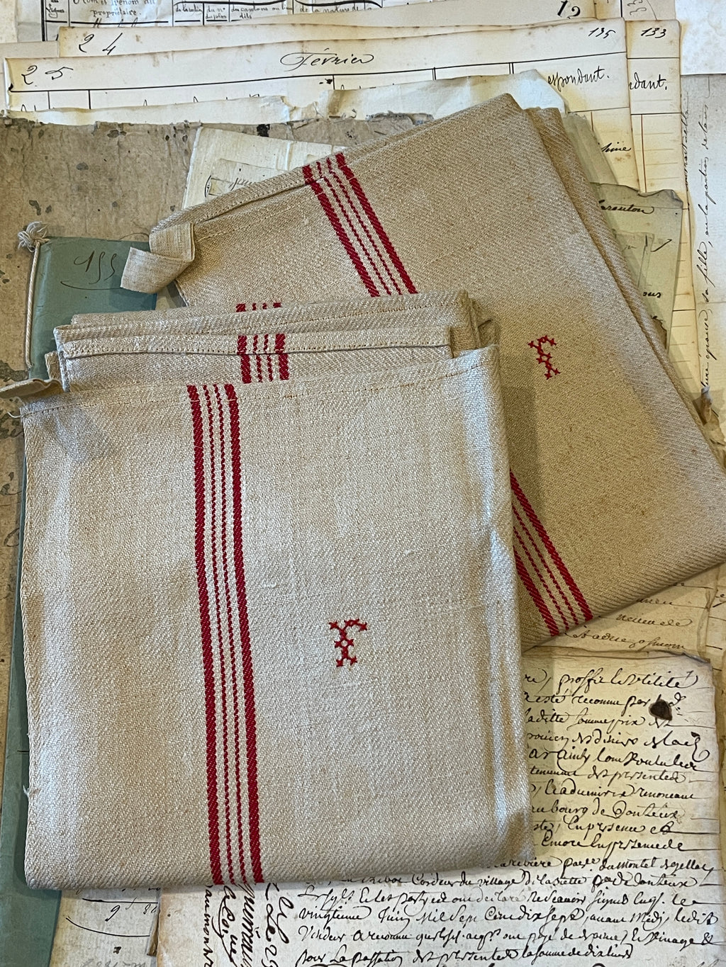 Antique Linen/Hemp Red Striped Torchon from the Farm Stitched F or R