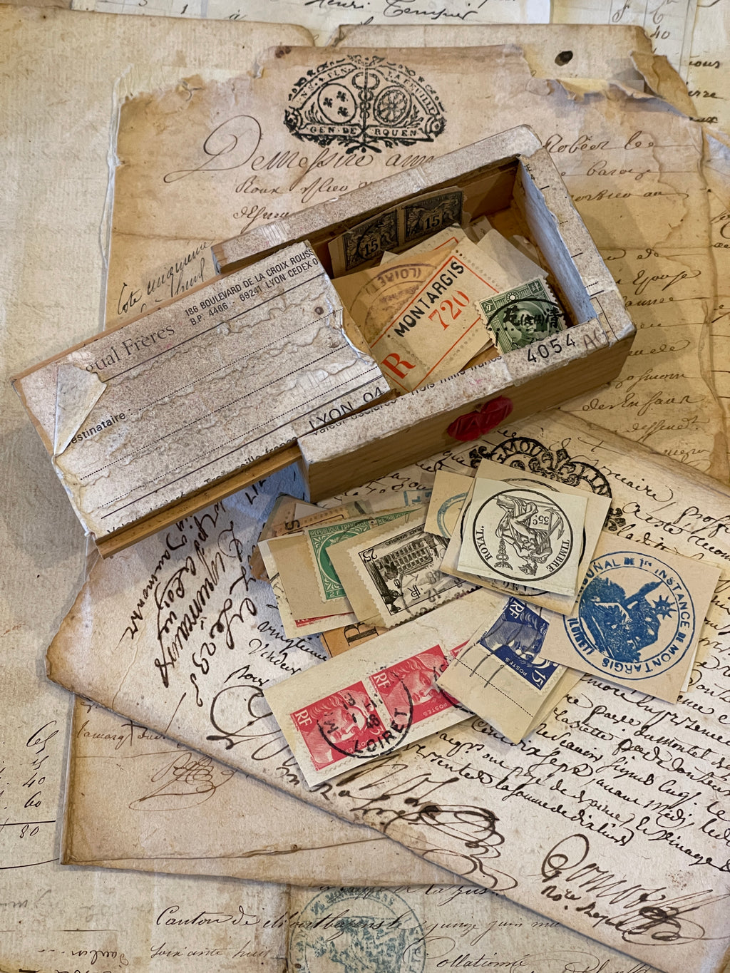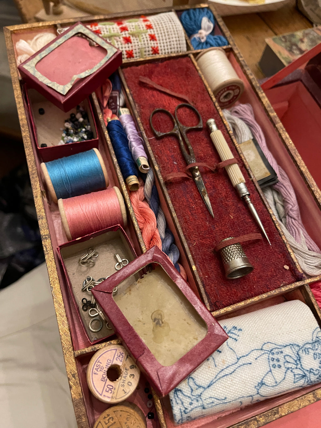 RESERVED - Antique French Sewing Box filled with assorted Goodies