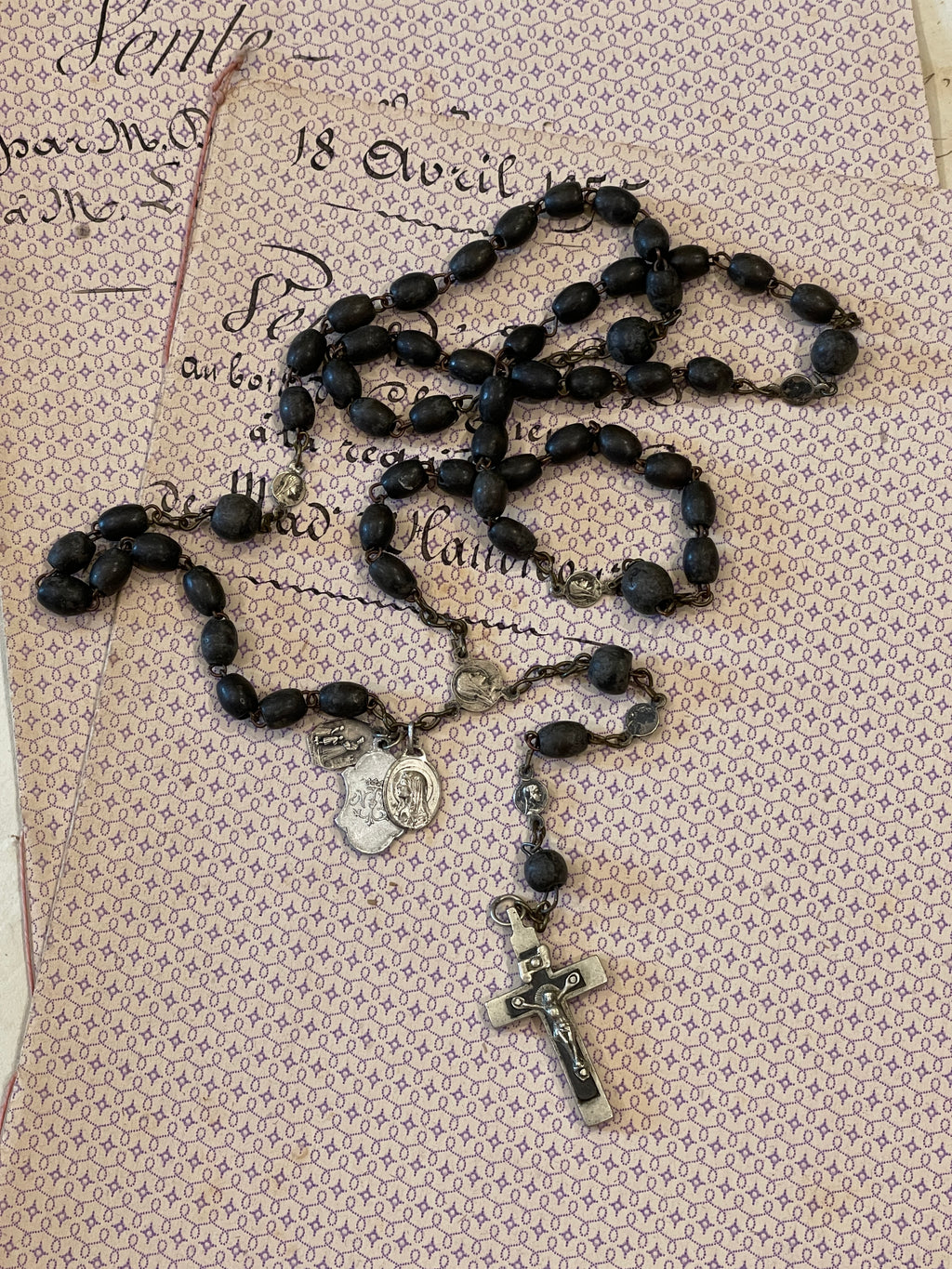 Antique French Sacred Heart rosary and Small Medals - ROS5