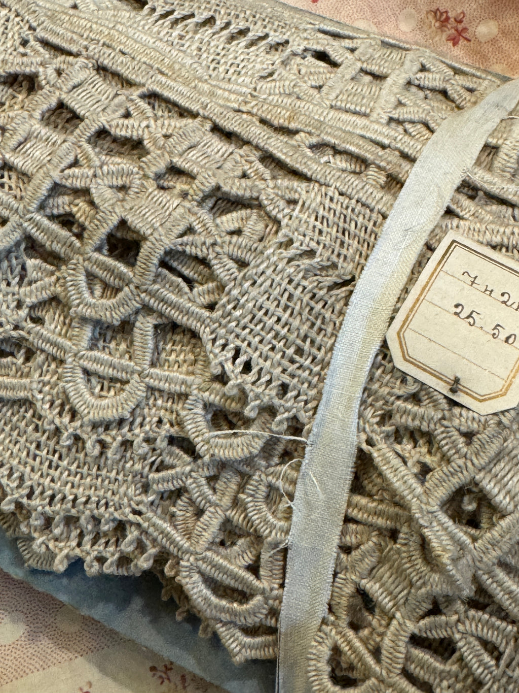 Antique French 1" Wide Handmade Bobbin Hemp Lace
